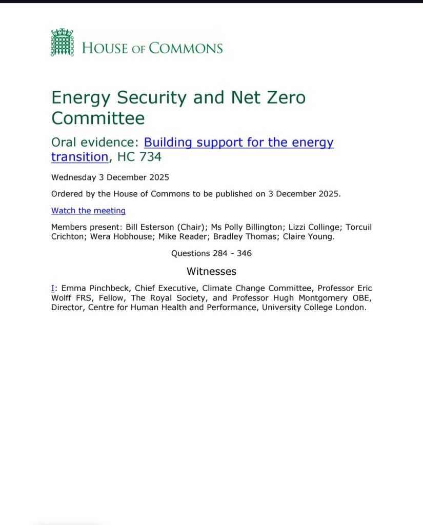 I attended the December 2025 session of the Energy Security and Net Zero Committee hoping to hear a serious examination of the evidence, the uncertainties, the trade-offs, and the real public concerns surrounding the so-called energy transition. Instead, what I witnessed felt far narrower than that. It was not an open forum in which competing views were tested honestly and rigorously. It was, in essence, a discussion about how to build public support for a transition that the political and institutional class appears already to have decided must happen. That was not my impression alone; it is there in the framing of the session itself. The inquiry was explicitly titled “Building support for the energy transition”, and the Committee opened by saying the session would explore how public institutions should communicate the transition, counter misinformation, and tie the message to co-benefits such as health and nature.