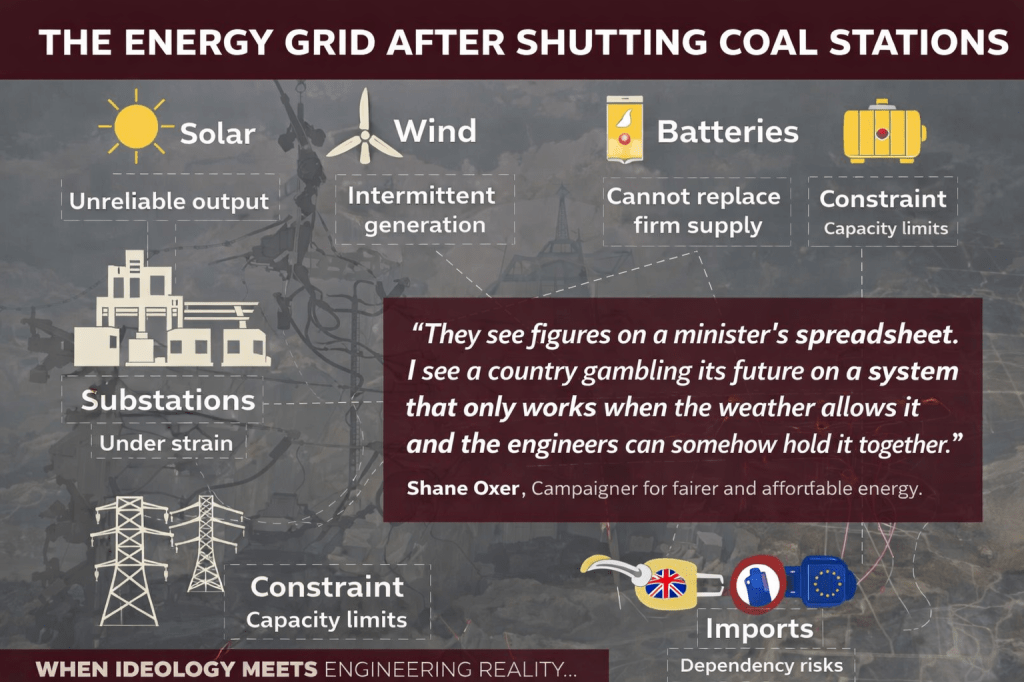 “They see figures on a minister’s spreadsheet. I see a country gambling its future on a system that only works when the weather allows it, and the engineers can somehow hold it together.”